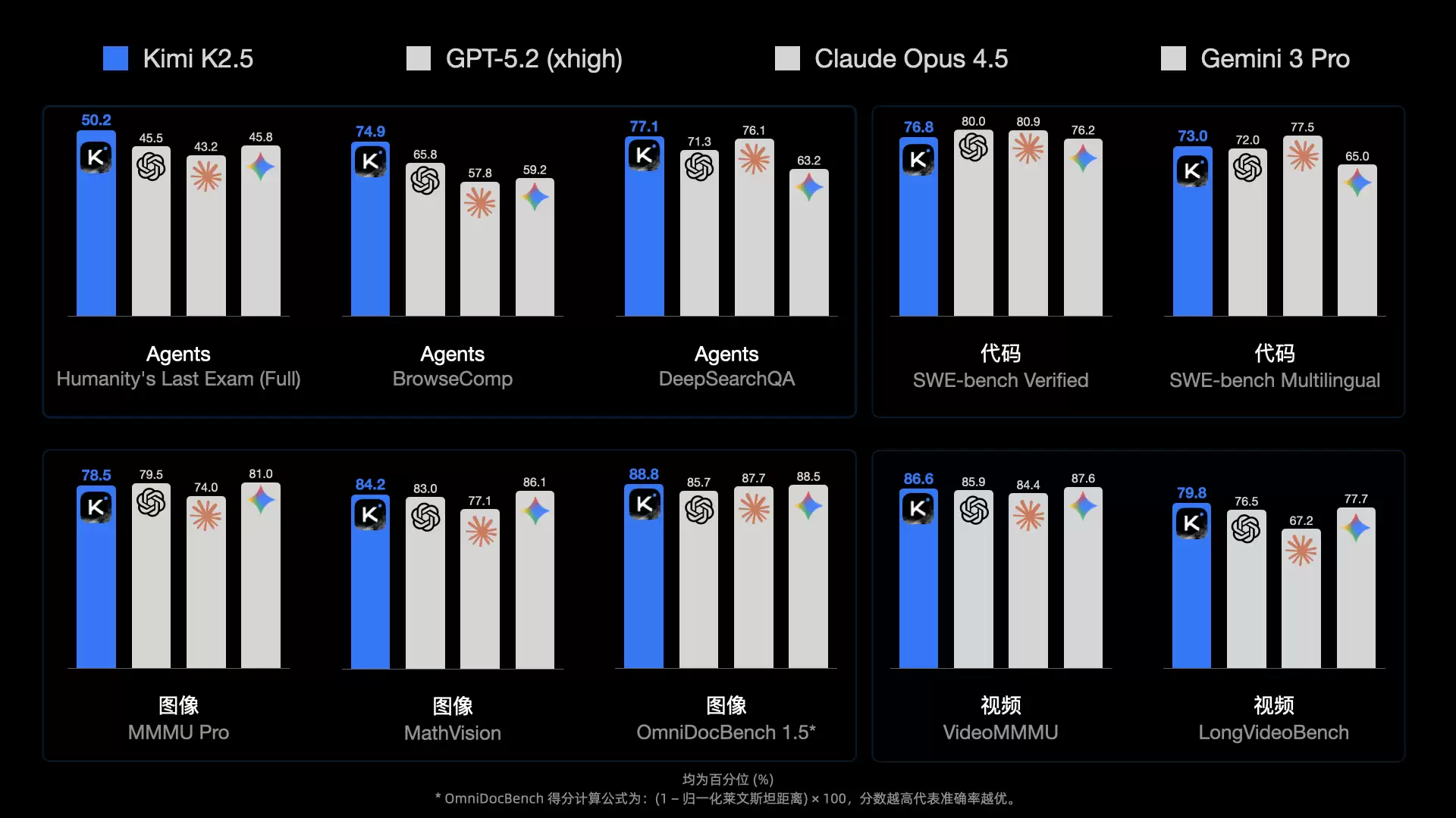 Kimi开源K2.5模型:增强视觉理解、代码与智能体集群