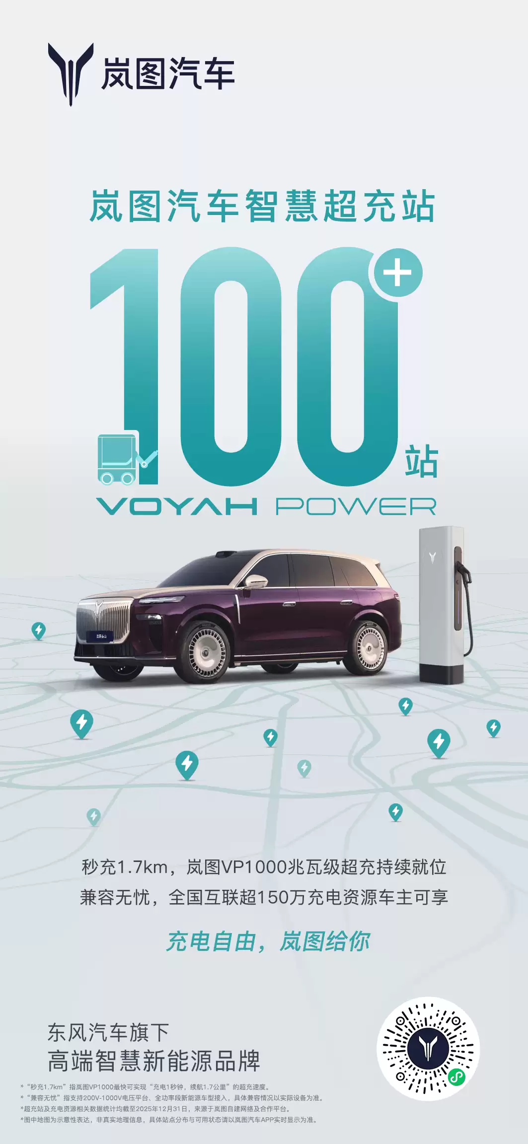 生态开放战略已成为岚图补能体系的核心优势。其智慧超充网络全面向所有符合国标的新能源汽车品牌开放,用户通过岚图汽车App即可享受“一键充电”、无感支付及免费停车等标准化服务。目前,该平台已与12家头部运营商实现互联互通,接入了超过150万根公共充电桩,服务网络覆盖全国99%的县级区域,并完成了“十纵十横”高速公路充电网络布局。即便在西北和川藏等偏远地区,也拥有超过10万根可用充电桩。