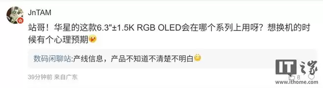随后,有用户在评论区询问:“站哥!华星的这款 6.3英寸±1.5K RGB OLED 会用在哪个系列上啊?想换机的时候也好有个心理预期。”博主回复称:“生产线方面的消息,具体产品还不清楚。”另一位用户则问道:“moto 的 LCD 屏幕怎么样了?”博主回复道:“正常推进中,LCD旗舰平板应该快了。”
