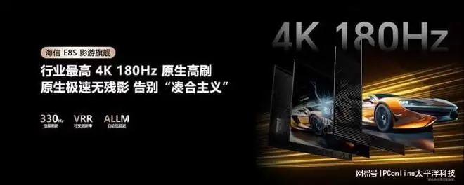游戏性能上,E8S提供了原生4K 180Hz刷新率(支持330Hz疾速模式),在HDMI 2.1接口下输入延迟低至4.7ms,达到专业电竞水平。