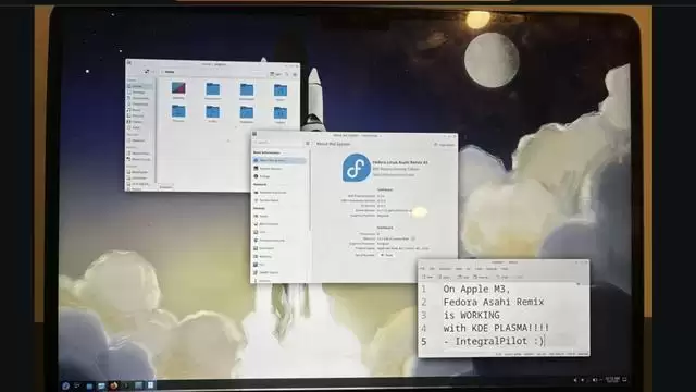 本周一,Asahi Linux社区的贡献者IntegralPilot在社交平台上发布了一张截图,显示Fedora 43 Asahi Remix已经能在搭载M3芯片的Mac上启动运行,其桌面环境为KDE Plasma。他表示,其他用户也已经在配备M3 Pro与M3 Max芯片的机型上成功启动Linux,不过这些安装实例都存在显著的局限与缺失功能。当前系统“确实可以启动”,但就终端用户的实际体验而言,还远称不上理想。