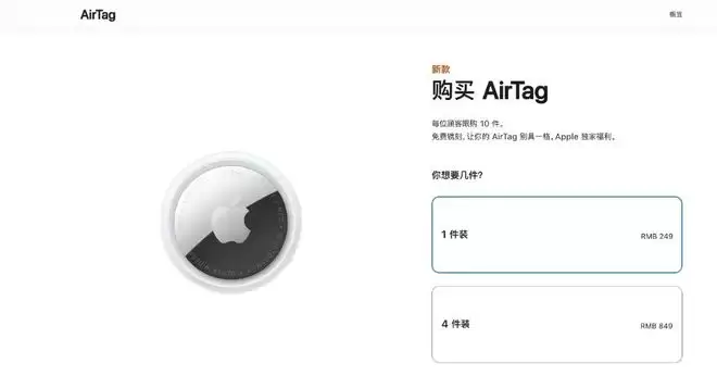 与此同时,苹果还带来了新款AirTag,售价保持不变,仍为 249 元(单件装)和 849 元(四件装)。