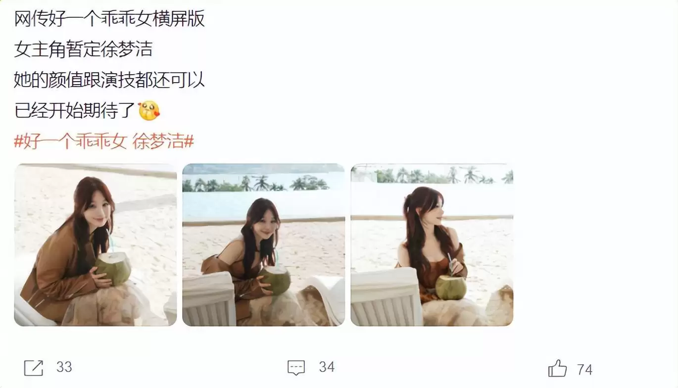 根据知情人士透露,电视剧版《好一个乖乖女》的女主是“徐梦洁”。提到徐梦洁,相信大家会立即想到《创造101》,因为她是凭借这档综艺节目出道,凭借甜美的长相和笑容,被网友称为“小彩虹”。