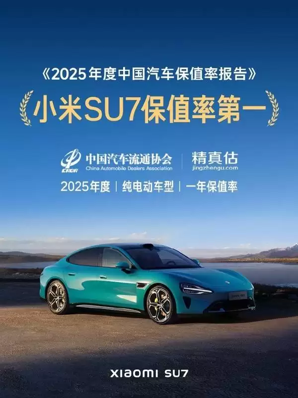 根据中国汽车流通协会与精真估联合发布的《2025年度中国汽车保值率报告》,在纯电动车型领域,小米SU7以高达86.05%的一年保值率荣登年度榜首,超越了问界M9(82.44%)和理想MEGA(78.56%),甚至领先于传统电动标杆特斯拉Model 3的75.27%,成为市场瞩目的焦点。