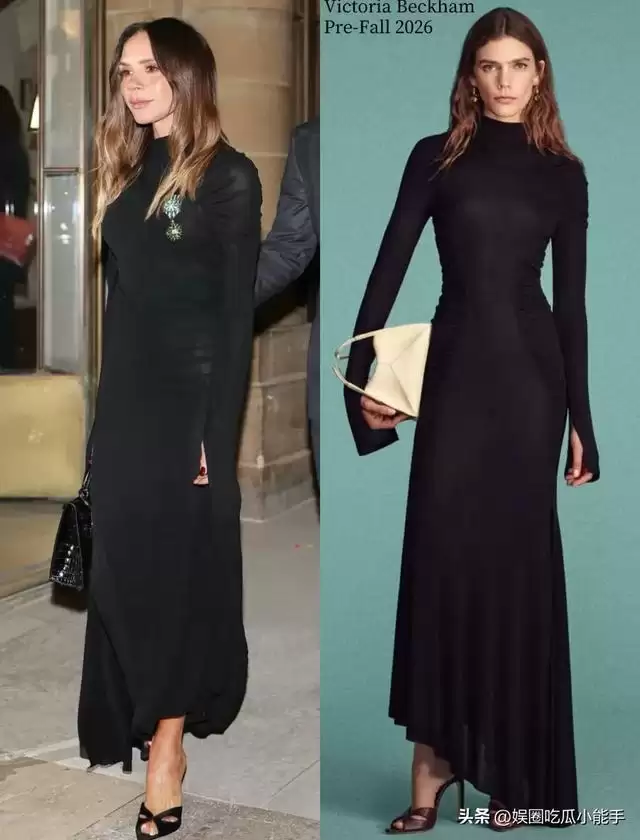 贝克汉姆一套深灰色西装,依然很帅气,他牵着维多利亚的手,两人十分恩爱。维多利亚上身秀一条黑色开叉裙子这条裙子也是来自维多利亚的2026年秀场款,还是很适合她的。