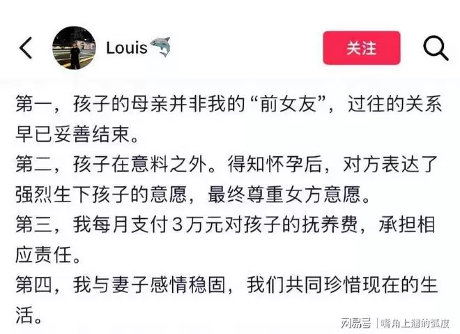 他第一条就澄清,孩子的母亲不是自己的前女友,过往关系已妥善结束。