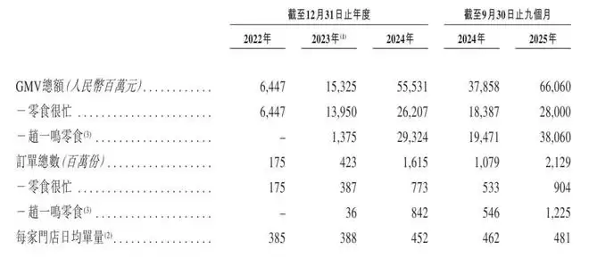于2024年,鸣鸣很忙录得GMV为555亿元。截至2025年9月30日的九个月内,鸣鸣很忙实现零售额(GMV)661亿元,较2024年同期增长74.5%。