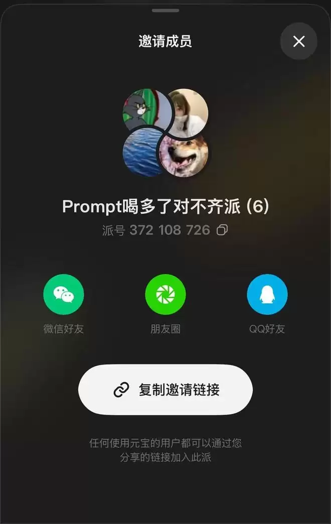还有一个容易被忽略的优势,元宝派直接打通了微信和QQ。你不用让朋友单独下载一个App、注册一个账号,分享个链接就能进来。这个门槛的降低,对于冷启动来说可能是决定性的。