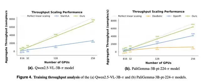 另外,值得注意的是,LingBot-VLA 的数据利用效率和算力效率也更高