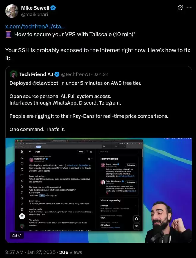 最有趣的是,你还可以把这篇文章分享给你Clawdbot,让它为你实施这些安全措施。