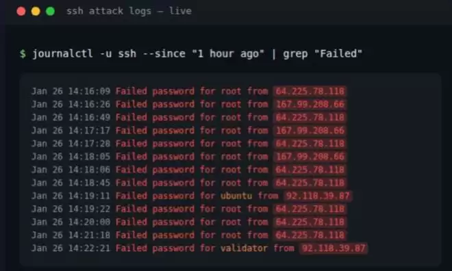 10分钟内,就有30次失败的登录尝试,来自3个不同的IP。如果不仔细观察,这个问题引发极其严重的后果。