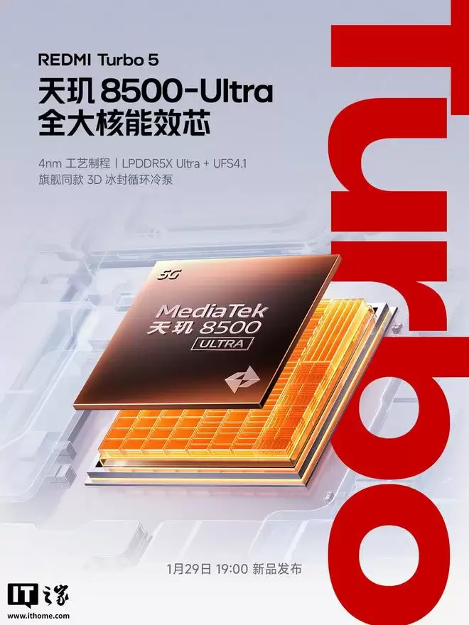 Redmi Turbo 5官宣:明日发布,搭载天玑8500-Ultra