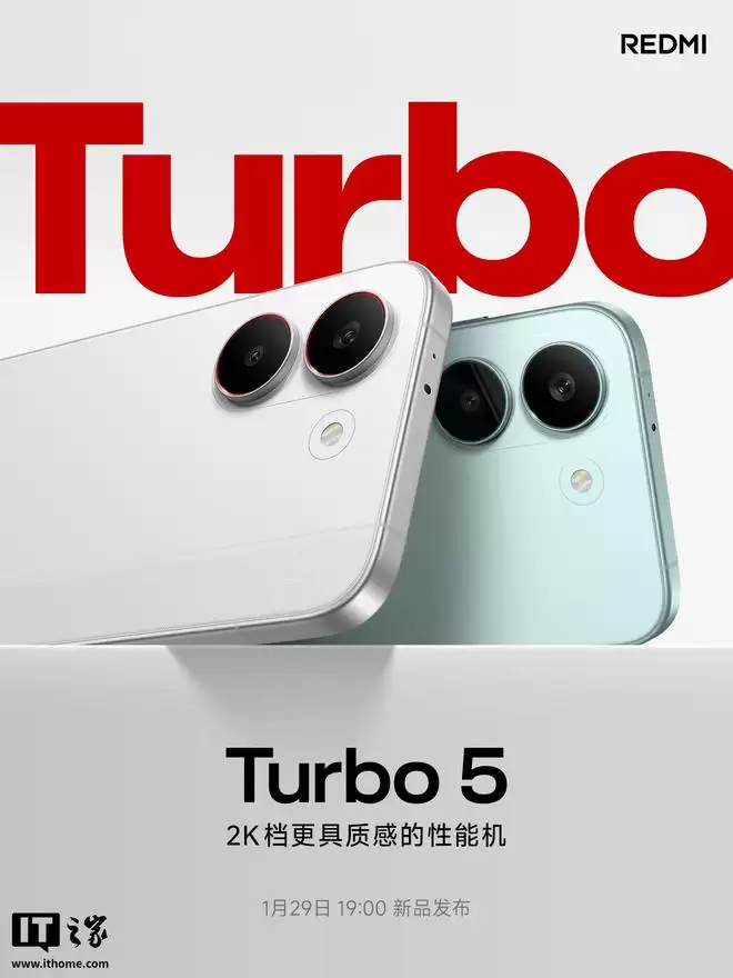 IT之家 1 月 28 日消息,小米 Redmi 红米手机今日开启了 Turbo 5 标准版机型的预热。新机定位为“2K 档更具质感的性能机”,将于明晚 19:00 正式发布。