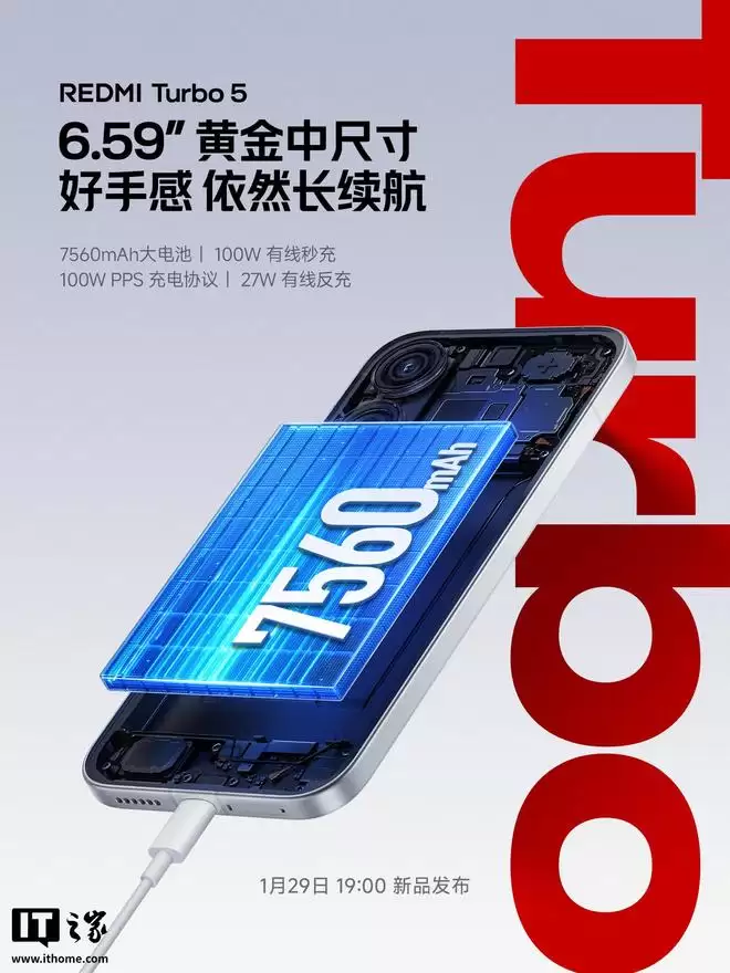 参考IT之家此前报道,小米 Redmi Turbo 5 系列手机已定档于 1 月 29 日晚 19:00 发布,其 Max 版和标准版的外观设计均已公开。