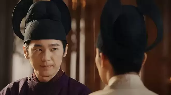 与朱亚文对戏时,他的眼神里有赏识也有托付,抬手拍肩的动作透着君臣相知的默契,分寸感把握得极佳。