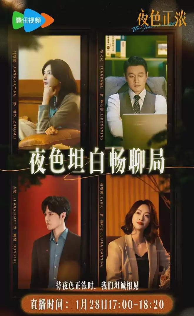 今晚18点,《夜色正浓》腾讯视频准时开播,不管是想蹲直播间看主创互动,还是直接冲正片磕剧情,都值得锁定。佟大为的黑化名场面、江疏影的清醒反击、阚清子的野心博弈,还有真实到扎心的职场潜规则,这部剧的看点多到数不过来。准备好瓜子饮料,今晚就沉浸式追剧,一起解锁这场都市男女的博弈大戏。