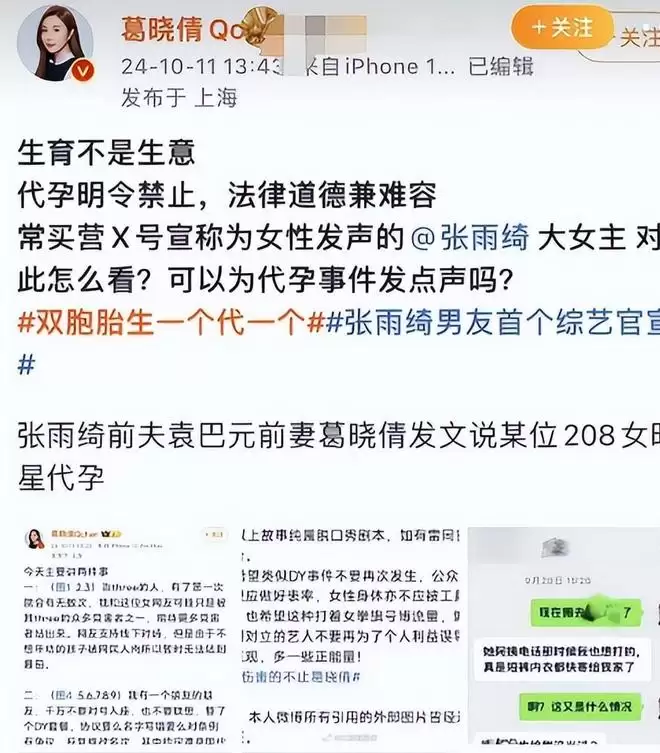 当时,葛晓倩发文称“生育不是生意,代孕明令禁止”。