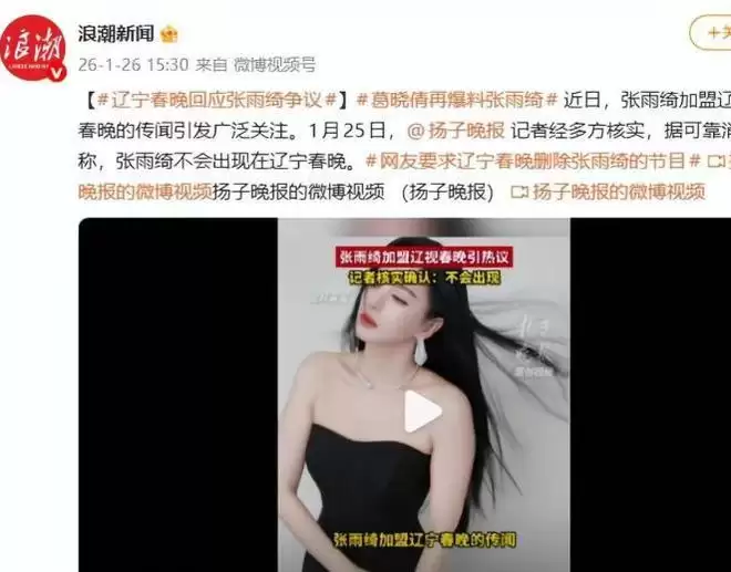 现在,张雨绮已经被辽宁春晚除名了。