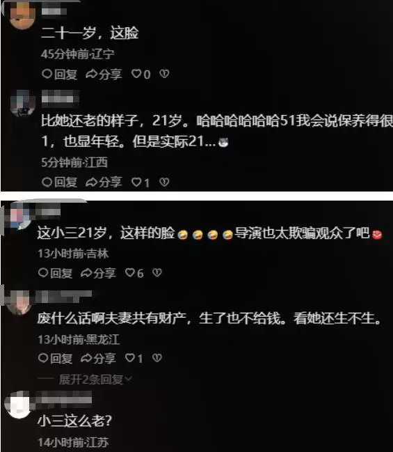 评论区的网友也纳闷,难道真的就找不到一个20出头的演员了吗,简直就是在强行装嫩。