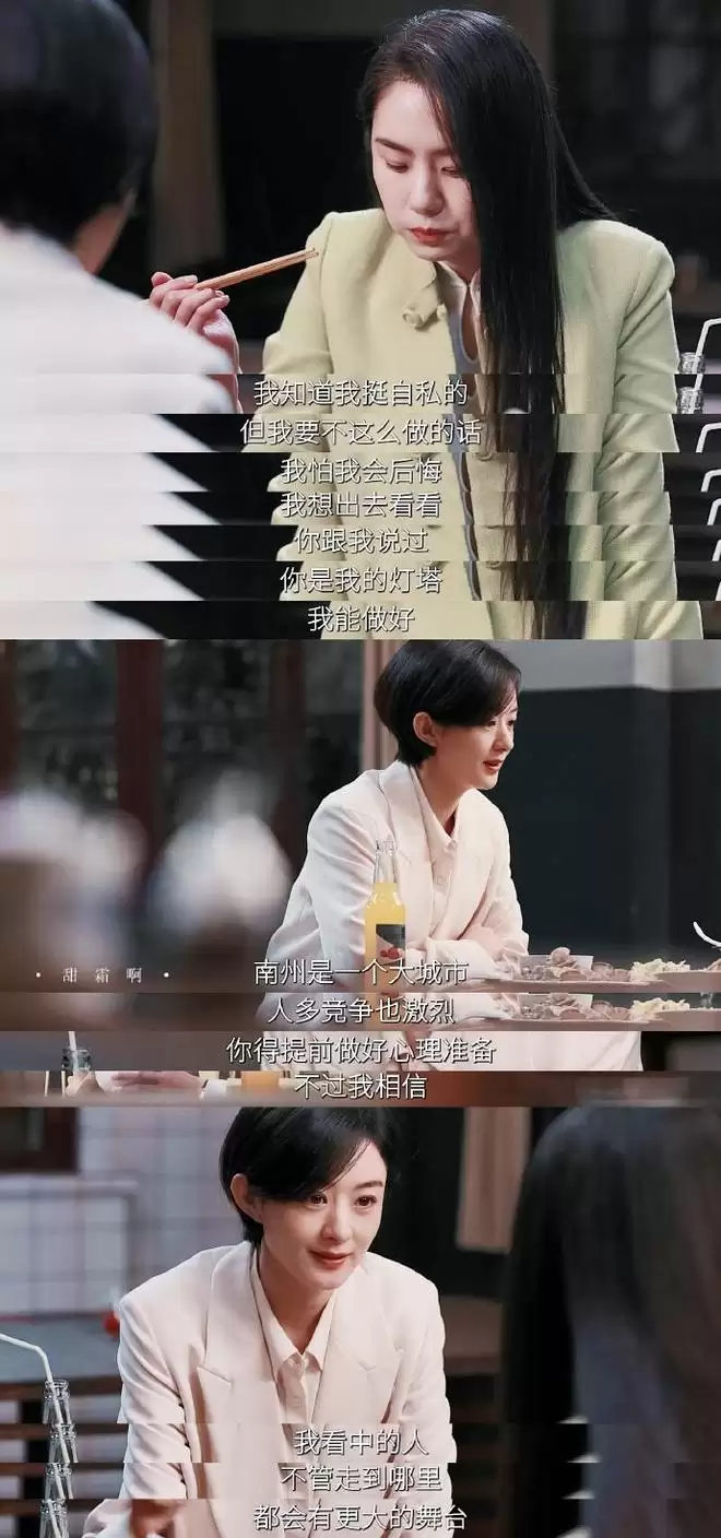 这份女性间毫无保留的信任与托举,超越了世俗的“闺蜜情”,展现了女性同盟最美好的形态:我或许不在舞台中央,但我的目光始终为你点亮。