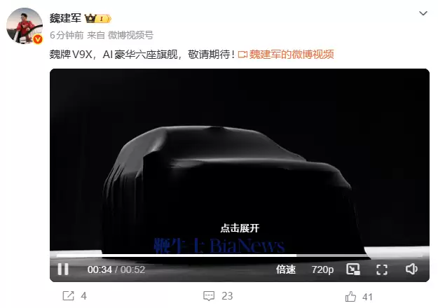 长城汽车董事长魏建军近期在社交媒体平台宣布,旗下高端品牌魏牌即将推出一款全新车型——V9X。这款被定位为“AI豪华六座旗舰款”的新车,凭借其前沿技术配置与先进的平台架构,迅速成为汽车行业关注的焦点。