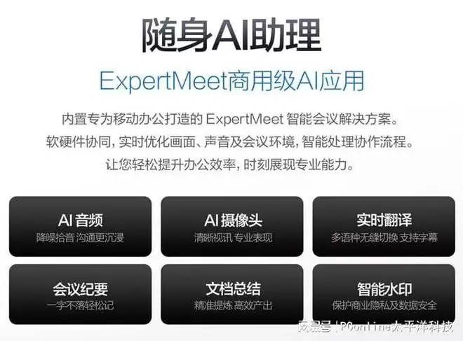 华硕破晓Ultra深度整合AI能力于商务场景,内置ExpertMeet AI会议助手,提供AI降噪拾音、清晰视讯、实时字幕翻译、会议纪要自动生成及智能文档摘要等强大功能。