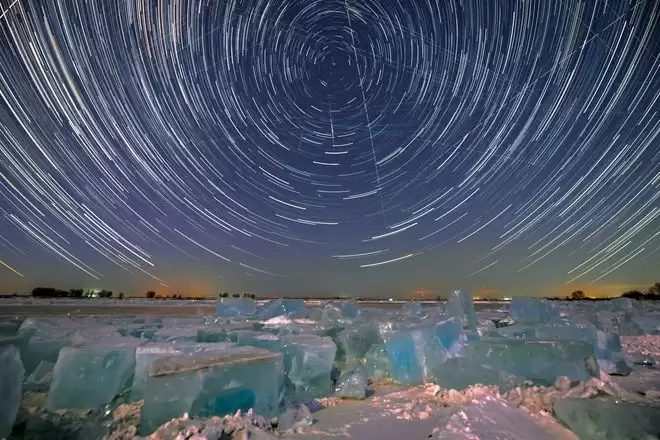 1月24日在黑龙江省齐齐哈尔市嫩江采冰场拍摄的星空(堆栈合成照片)。新华社发(王勇刚摄)