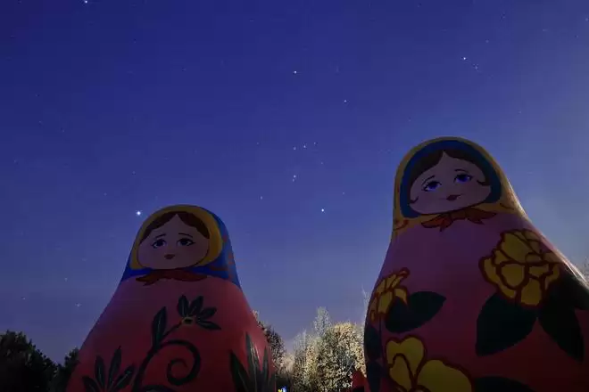1月22日在黑龙江亚布力滑雪旅游度假区拍摄的亚布力冰雪文化展馆与猎户座同框。新华社发(曾东摄)
