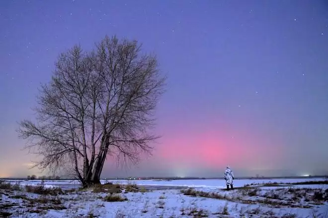 1月20日,在齐齐哈尔市嫩江江畔拍摄的极光。新华社发(王勇刚摄)