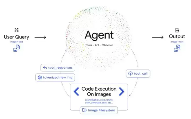而Agentic Vision引入了一个「思考-行动-观察」(Think-Act-Observe)的闭环: