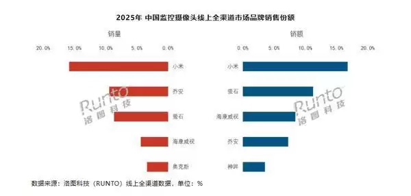 小米线上监控摄像头销量第一 2025年份额达16.8%