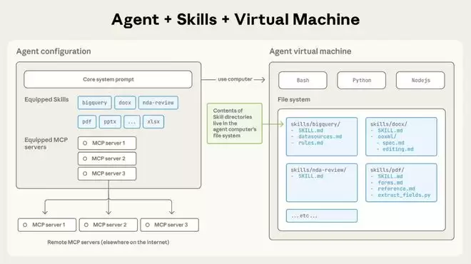▲Skills 是一个目录,其中包含一个 SKILL.md 文件,该文件组织了指令、脚本和资源的文件夹,为 Agent 提供额外的功能。