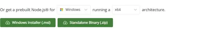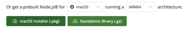 ▲ Nodejs 网页截图,使用默认下载即可,下载第一个(.pkg 文件/.msi 文件)