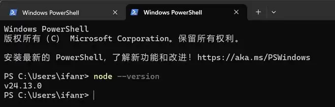▲安装成功,终端应该会显示版本号「v24.13.0」,具体版本可能会有所不同。
