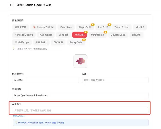 ▲cc-switch 页面,图片来源:https://platform.minimaxi.com/docs/guides/text-ai-coding-tools