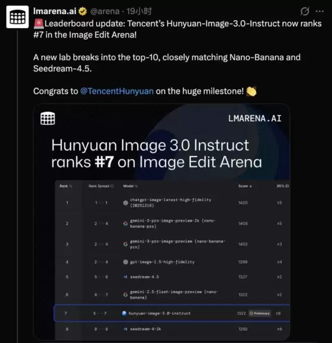 LMArena最新X祝贺混元图像3.0图生图“在图片编辑榜单中与Nano-Banana和Seedream-4.5等表现相当”。