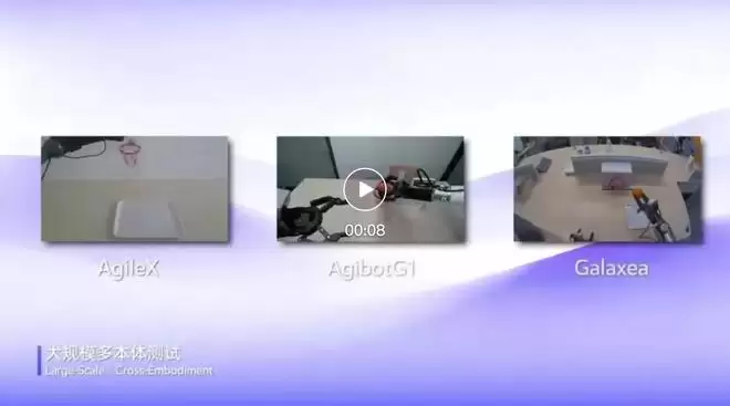 并且同样的任务,因为有了一个聪明的脑子,不论是放在AgileX、AgibotG1还是Galaxea三个不同的机器人身上,统统都能迎刃而解: