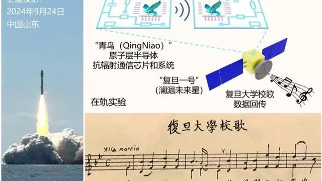 团队依托2024年9月24日发射的“复旦一号(澜湄未来星)”卫星平台,在国际上首次实现基于原子层半导体的抗辐射射频通信系统(“青鸟”系统)的在轨验证,直接揭示了该系统在真实宇宙辐射环境下的长期工作稳定性与可靠性。同时,“青鸟”系统向1970年4月24日发射的东方红1号致敬,完成了以“复旦大学校歌”为信号载体的太空通信传输。同时,研究团队从粒子辐射损伤的物理机制出发,揭示了原子层级材料的辐射免疫机制,不仅填补了二维电子器件空间在轨验证的空白,更开辟了“原子层半导体太空电子学”的创新领域。