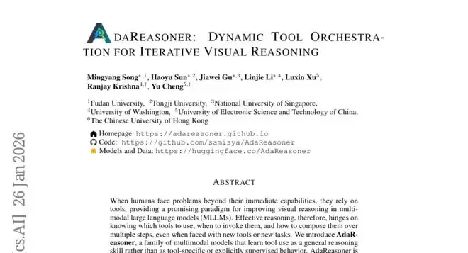 A:AdaReasoner通过三阶段训练获得这种能力:首先学习高质量的工具使用示例,然后通过强化学习在实际任务中练习,最后通过自适应学习机制增强泛化能力。训练中会随机改变工具名称和描述,迫使AI理解工具的本质功能而不是依赖字面意思,从而能够快速适应新工具。