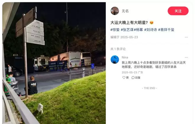 据悉,早在2025年5月,深圳大运天地就已因这部影片的拍摄迎来一波打卡热潮。有粉丝在小红书上“剧透”,称偶遇电影拍摄现场,让龙岗的这方天地提前解锁了电影氛围感,也让更多人对这片取景地充满期待。