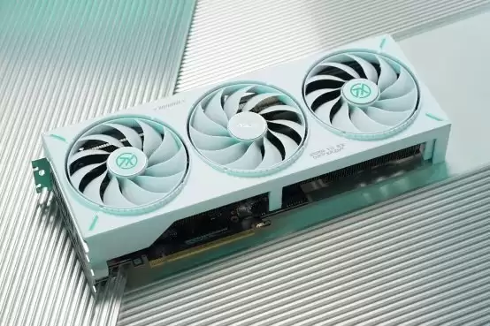天选TX RTX 5060显卡整体外观融入了天选姬的视觉元素,显卡背面加装了高强度金属背板,并设计了X镂空进气格栅,有效改善整机的散热风道。显卡标配三个双滚珠轴流风扇,在提供强大散热气流的同时也有效降低了工作噪声,散热效果与静音兼得。散热器方面,它的散热底座采用了MAXCONTACT镜面直触技术,让散热底座与GPU接触更加充分!显卡采用了2.5槽厚度,巧妙地排列了外壳、散热片和热管,使三个轴流风扇能够利用背板通风口、机箱侧面板通风,并提供更强的散热性能。