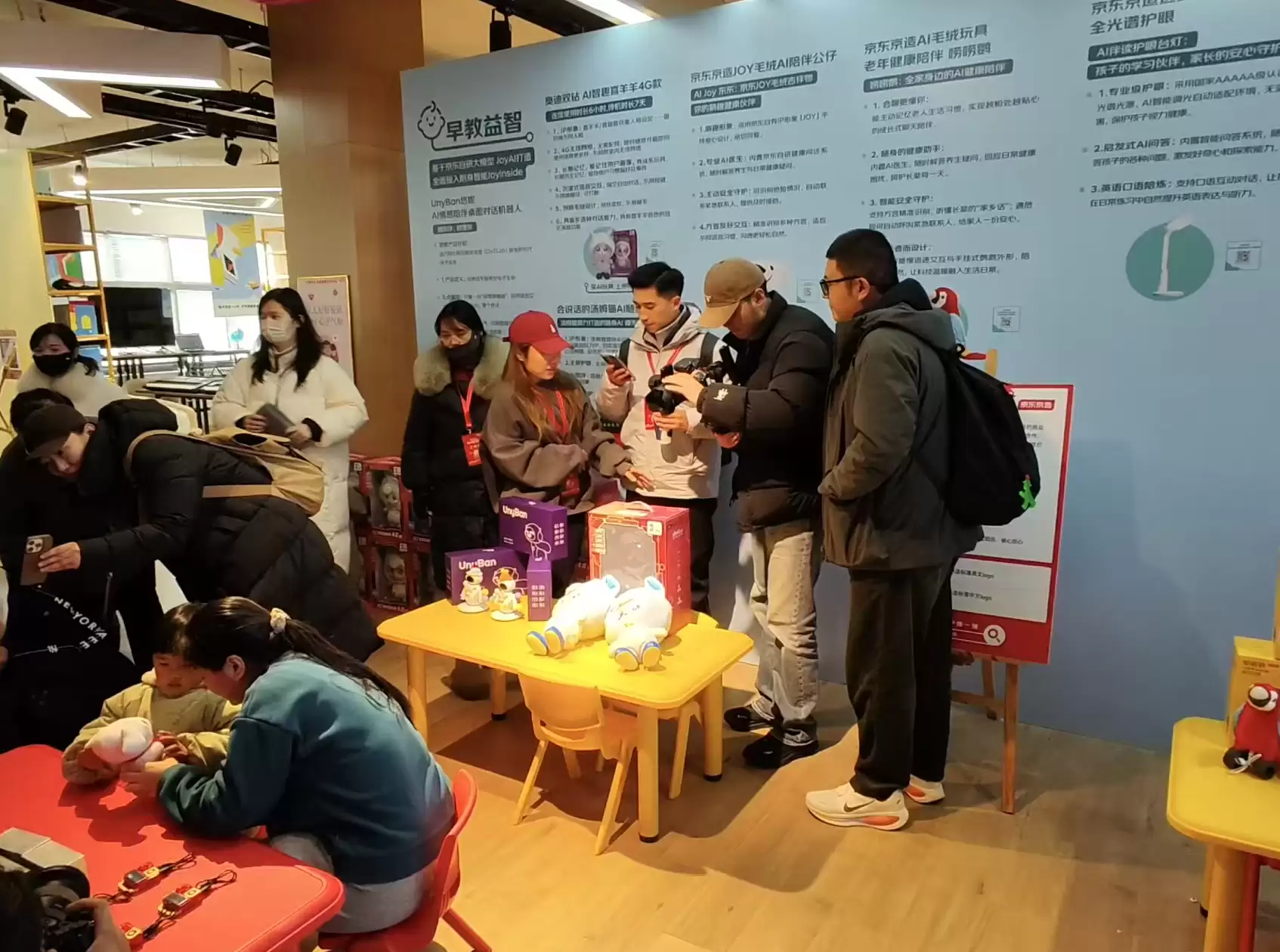 AI互动区中,搭载京东自研JoyInside附着智能技术的元萝卜AI下棋机器人,以拟人化交互助力学生锻炼逻辑与策略思维;早教益智区的京东京造AI智能台灯、AI闹钟等设备,则为学生构建健康高效的学习环境。