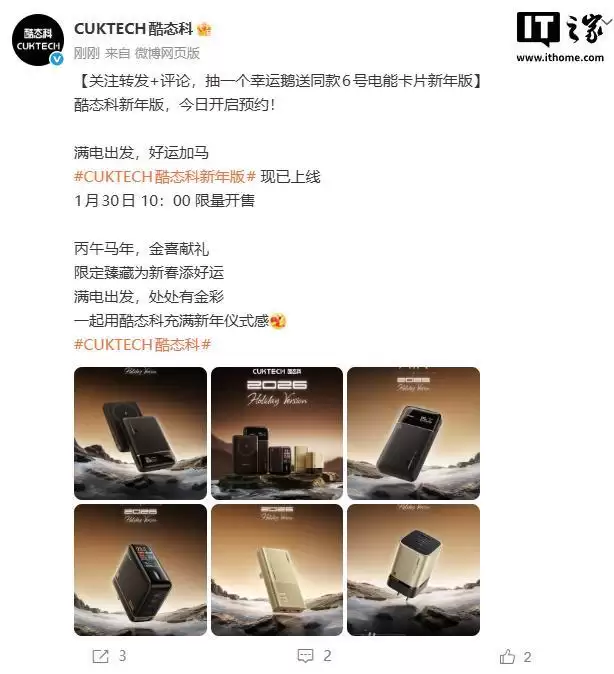 IT之家1月28日消息,酷态科今日宣布推出一系列新年限定版产品,具体信息汇总如下: