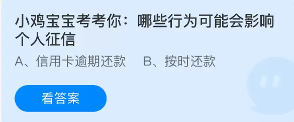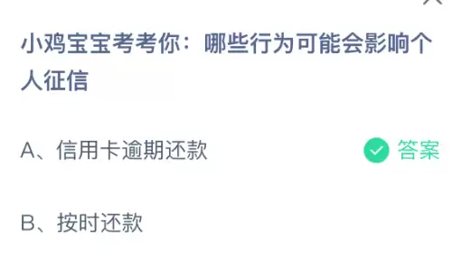 这些行为会影响征信?支付宝蚂蚁庄园1.29答案详解