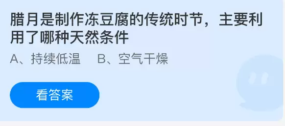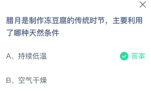 1、腊月是制作冻豆腐的传统时节,主要利用了哪种天然条件