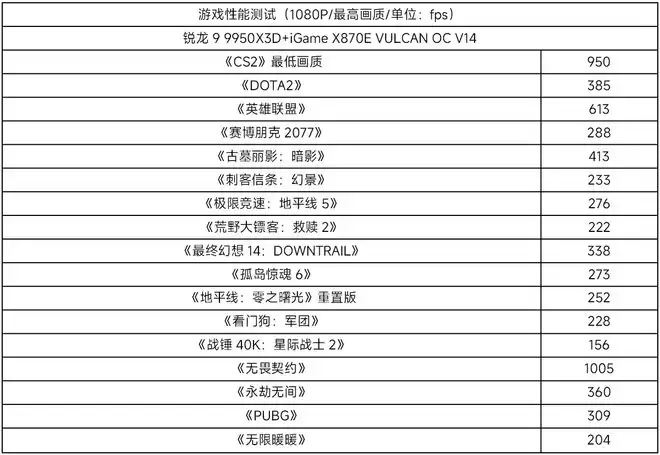 在玩家们最关注的游戏性能方面,我们挑选了十几款相对热门的网游和3A游戏进行测试。七彩虹X870E火神加上锐龙9 9950X3D和RTX 5090 D的组合,可以带来极为流畅的画面表现,在《无畏契约》这种FPS游戏中更是可以达到千帧水平,将游戏体验推上了新高度。此外,七彩虹X870E火神在搭配X3D处理器时,还可以在BIOS中打开X3D Game Mode选项,可以进一步提升锐龙9 9950X3D这种双CCD的X3D处理器在部分游戏中的性能。