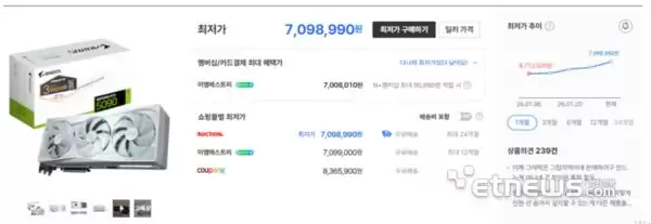来自韩国某电商平台的数据显示,NVIDIA GeForce RTX 5090显卡的售价目前已经飙升至700万韩元以上,折合人民币约3.4万元。