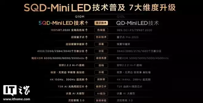 作为 TCL 电视产品线中的核心力量,Q10M 系列不仅继承了前代产品的市场定位,更将此前仅用于旗舰机皇 X11L 上的 SQD-Mini LED 技术进行了全面下放。