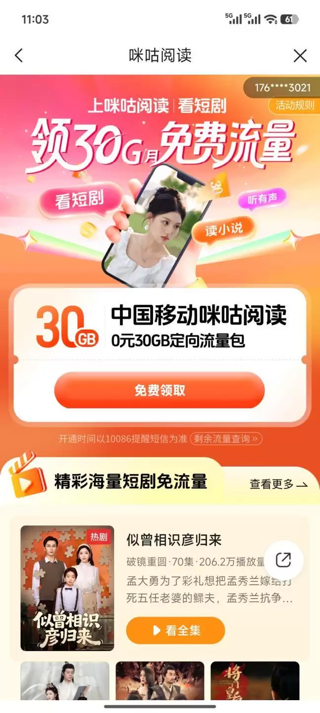 在用户服务上,咪咕悦看推出“免流量刷剧、视频化体验、海量内容畅享”三大策略。