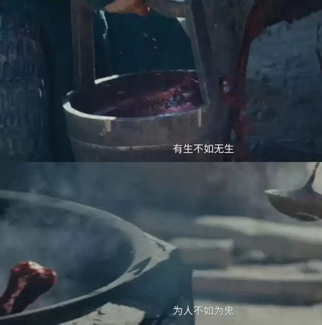 “时民间无积聚,贼掠人为粮,生投于碓硝,并骨食之,号给粮之处名曰‘春磨寨’。”《太平年》开篇便将五代十国饿殍遍野、以食人为常甚至为乐的那个弑杀崩坏的世界呈现出来。此前少有历史剧能如此直面古代人间最残酷的景象,尺度虽大,却也足够真实。